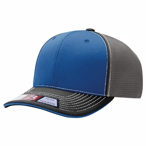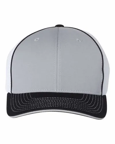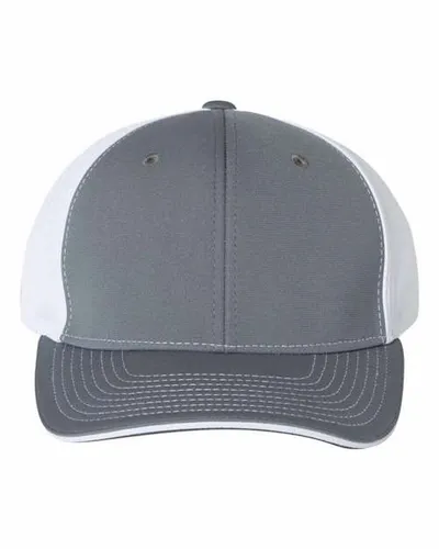 Front: 98% Polyester/2% Spandex  Back: 95% Polyester/5% Spandex Pulse Fabric, Sportmesh Structured, Six-panel, Mid Pro Profile Pre-curved Contrast Stitch Sandwich Bill Comfort Stretch Sweatband Small/Medium: 17.5 cm – 18.5 cm Large/XLarge: 18.5 cm – 19.5 cm
