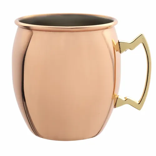 473 mL Copper Coated Stainless Steel Mug. Single Wall. Stainless Steel Handle. Moscow Mule Inspired