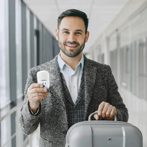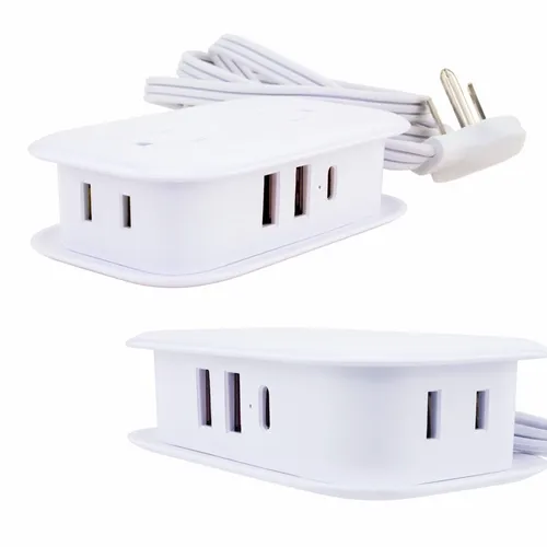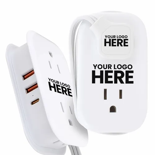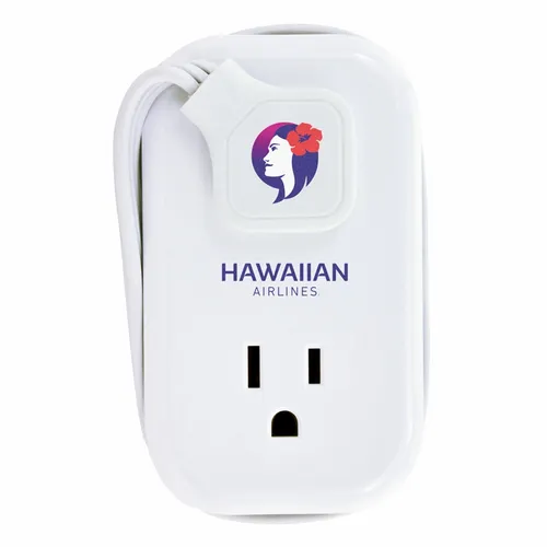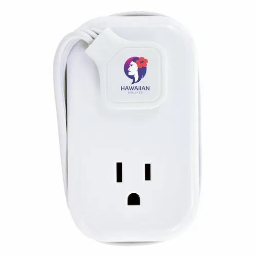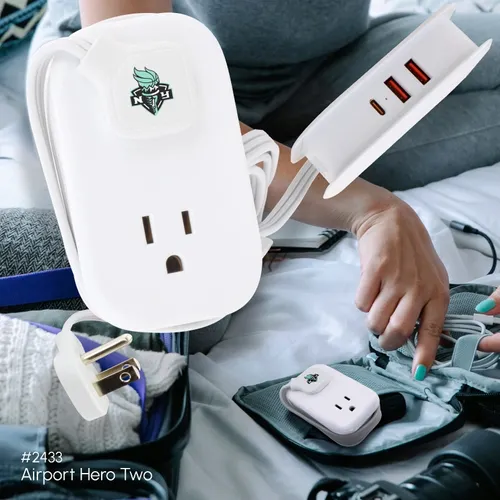 When there's only one power outlet, save the day with the Airport Hero Two! This promotional power strip for travel has 4 power outlets and 3 USB ports.