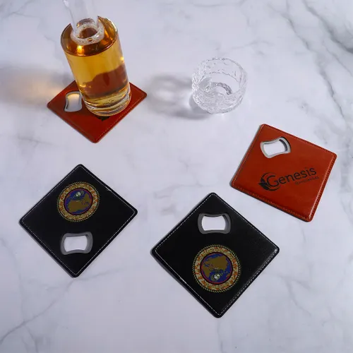 Grab your own Leather Bottle Opener Coaster. Elevate your gift-giving style and boost your business promotions. With this innovative coaster, you have the freedom to customise its design, which will be proudly displayed in homes, restaurants, bars, and wherever else you can imagine. This versatile coaster serves as both a decorative item and safeguards tabletops from water stains. Customise your coaster today and leave a lasting impression!