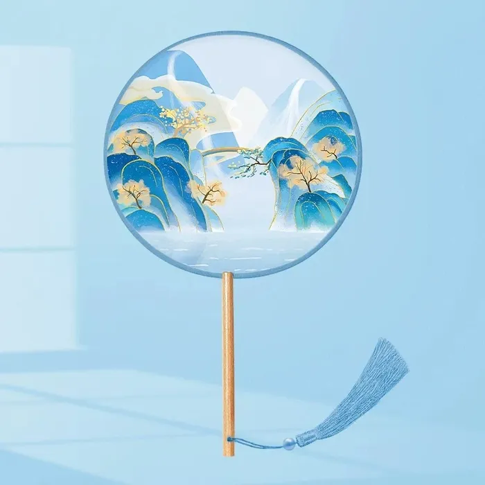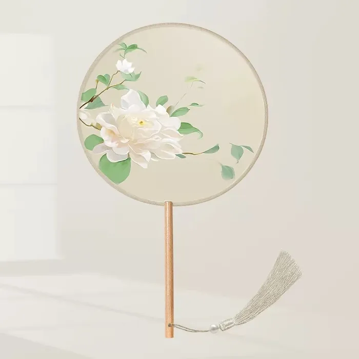 A custom silk hand fan is a beautifully crafted fan made from imitation silk with bamboo and wood handles, offering both durability and elegance. Available in three shapes—Round (20 cm), Petal (20 cm), and Haitang (22 cm)—each fan is designed with a smooth, silky touch that blends modern simplicity with classical charm.