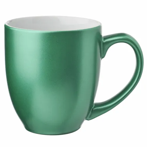 473 mL Metallic Bistro Coffee Mugs. Smooth Molded Ceramic Composite. Metallic Colour Exterior with White Colour Interior. Easy Comfort Grip C-Curved Handle. High-Curved Grip for Easy Grab-n-Go Handling. Recommended Hand Wash Only