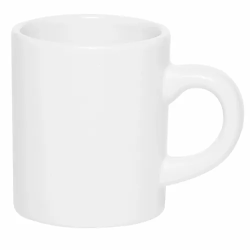 118 mL Mini Ceramic Mugs. C-Shaped Handle. Durable Stoneware Material. Recommended Hand Wash Only