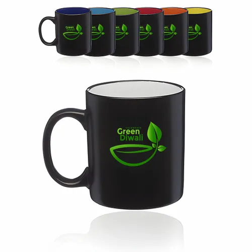 Introducing our exquisite Matte Bicoloured Ceramic Coffee Mugs with a captivating twist of colour on the interior. These 325 mL, two-toned matte mugs combine style and subtlety to create a truly remarkable coffee-drinking experience. Crafted with meticulous attention to detail, the smooth molded ceramic composite ensures lasting durability and a luxurious tactile sensation. The alluring black matte finish on the exterior exudes sophistication, while the colour interior adds a delightful pop of vibrancy. To further enhance your comfort, we've designed these mugs with an easy-to-hold C-curved handle, providing a secure grip and making every sip a pleasure. Whether you're starting your day with a rejuvenating cup of coffee or enjoying a serene moment with your favourite tea, these mugs are the epitome of elegance. Elevate your beverage indulgence with our captivating Coffee Mugs!