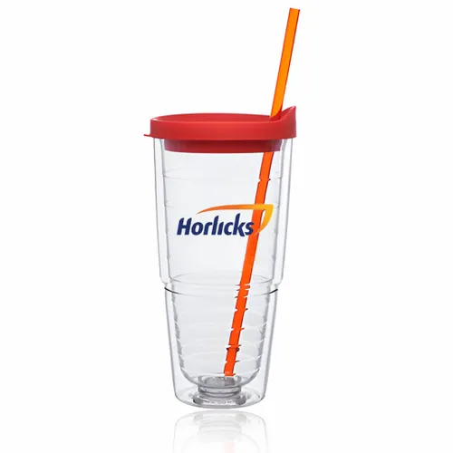 Introducing our 710 mL, Crystal Chill Solid Clear Acrylic Tumblers.. Crafted with durable acrylic, these clear tumblers provide a crystal-clear view of your beverages while offering double-wall insulation to keep drinks hot or cold. The matching lid and straw add a touch of colour, and the slide-lock spill-proof mechanism ensures mess-free travel. BPA-free and with a removable, reusable straw, these tumblers prioritise both your enjoyment and safety. Elevate your drinking experience with the sleek design and practical features of our 710 mL Double Wall Solid Clear Orbit Acrylic Tumblers, perfect for any occasion and an excellent gift option.