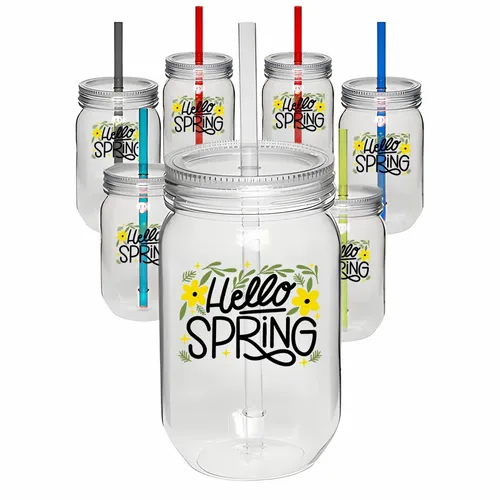 These 710 mL Classic Mason Jars are perfect for storing your favourite beverages. Made from durable AS plastic material, this Single Wall Mason Jar are lightweight and easy to carry. The screw-on lid and straw make it easy to drink from, and the clear plastic allows you to see what's inside. These jars are also dishwasher safe for easy cleaning. They have a 710 mL capacity and are perfect for your favourite drinks, taking drinks on the go. Order your set of 710 mL Classic Mason Jars today and start enjoying all the benefits of these amazing jars!