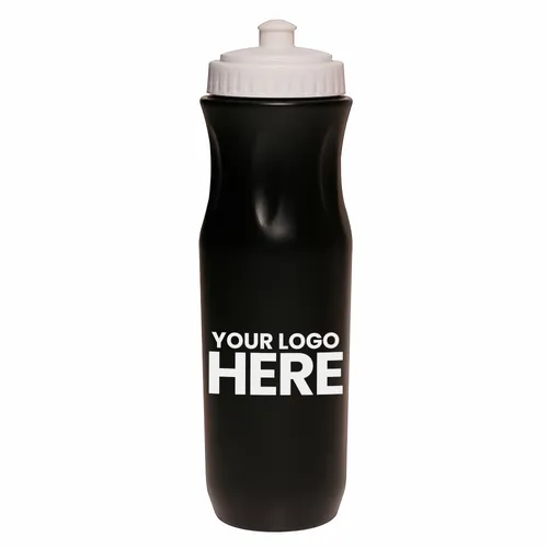 Plastic Sports Bottles. Push Top Lid. Black Screw-On Cap. Holds Up to 769 mL of Liquid