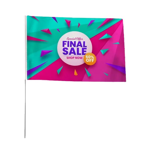 A custom flag is a traditional yet still super effective way to advertise your brand, business, services, and/or products. Flags can generally help in drawing attention to your event, as it’s the most practical way to gain passive attention without trying too hard! Our custom hand flags can definitely help you draw some much-needed attention, especially because they can be customised in a multitude of ways! Our flags are perfect for any event, including but not limited to high school and college sports competitions as well as major outdoor events! Unlimited colours, no set-up charge, and a professional graphics team—we can help you bring your design to life here at Custom Flags Now!