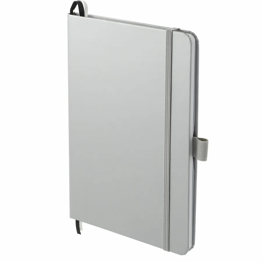 The 5.5 x 8.5 FSC Mix Bound Journal features a FSC-certified paper hard cover with 80 sheets of white FSC-certified, soy-based ink lined paper. Includes color-matching elastic closure, pen loop and ribbon page marker. Through a partnership with 1% For The Planet, one percent of sales of all EcoSmart products are donated to environmental nonprofits. Digital Inkjet not available on Silver color.