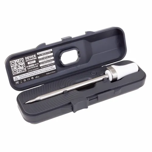 It's a smart BBQ thermometer probe that sends cooking temperature readings to the ToGrill phone app. The perfect tech promo for a wide range of industries related to food or activities such as picnics, camping, and sports.
