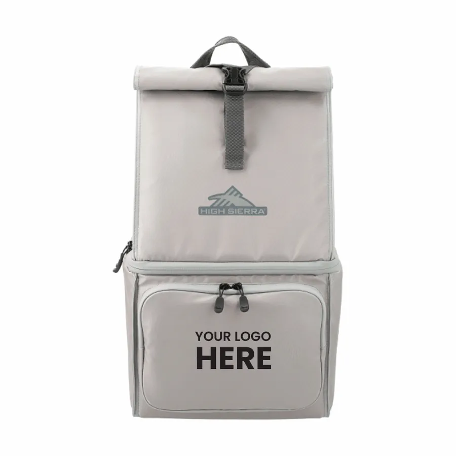 The High Sierra 12 Can Backpack Cooler is the perfect balance for an all-in-one bag/cooler combo. The top section is a non-insulated compartment with a roll-top opening. The bottom compartment is a fully lined cooler compartment for drinks and snacks. The outer material and cooler lining are both wipeable.