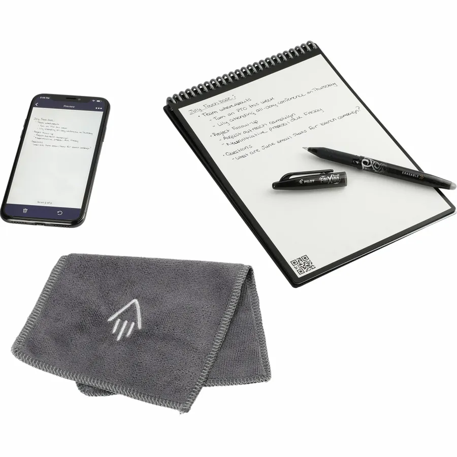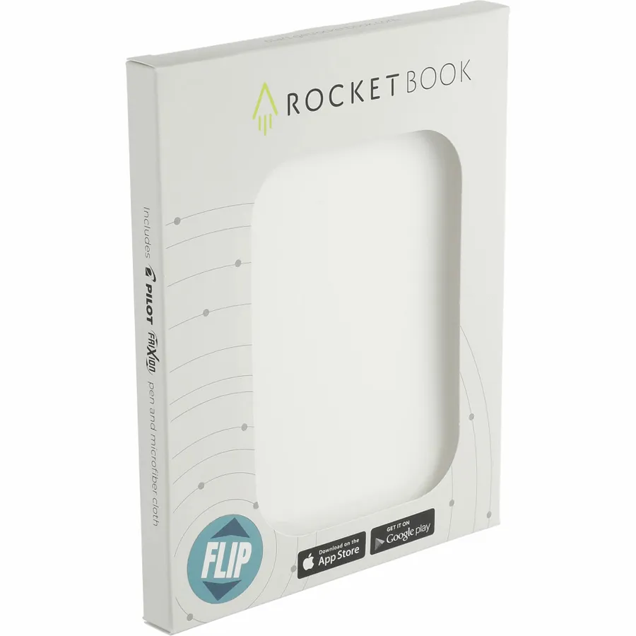 The RocketBook Executive Flip Notebook Set is designed for the modern business professional. It includes 36 pages of white lined, college ruled, dotted paper made from synthetic polypropylene materials and allows you to write smoothly using the included Pilot Frixion pen. When youre done writing, the RocketBook Notebook magically wipes clean with a damp cloth to reuse again and again! Use the RocketBook app to back up your notes, plans, lists, and big ideas to your preferred cloud storage service. Then, erase and reuse your Flip to record and share your next great idea.