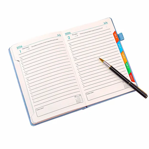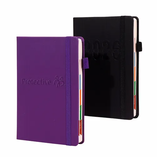 A stylish, durable planner with a convenient strap closure, perfect for organising notes, schedules, and ideas on the go.Size: 5.8 in x 8.3 inCover: Colour-changing PUPages: 200 sheets / 400 pages (80g paper)Colours: Green, Blue, Purple, Black, Orange, PinkWeight: 515gCustomisation: UV printing, foil printing, debossingImprint Area: 100 mm x 100 mmIdeal for professionals and students who want both style and functionality in one planner.