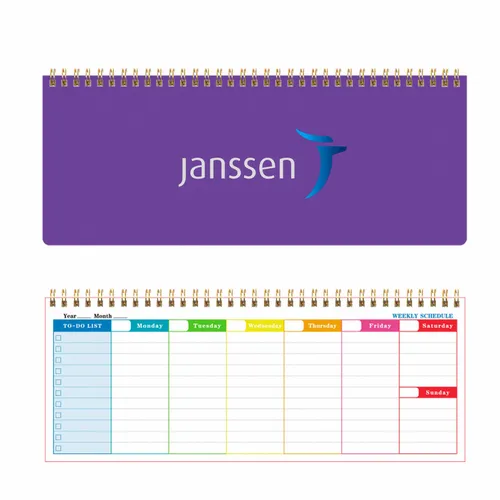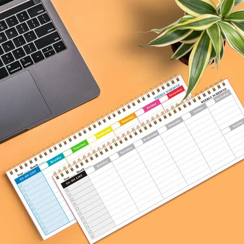A sleek, flexible planner perfect for weekly planning anytime, featuring two types of inner pages and a durable cover for everyday use.Size: 4.7 in x 12 inCover: Double adhesive paperPages: 60 pages (80g writing paper)Layout: Two types of inner pages, colour printingColours: Black, Purple, Blue, Pink, GreenCustomisation: Supports full-colour logo, UV printing, foil printingGreat for staying organised with a stylish, customisable planner that works year-round.