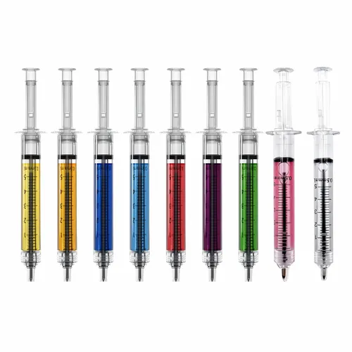 Searching for quality and affordable different kinds of Pens? Here, we offer our Custom Injection Pen also known as syringe pens, this novelty writing instrument designed to resemble medical syringes. They are popular promotional items for healthcare-related events, educational institutions, and novelty giveaways due to their unique and eye-catching design. These pens often come with customisable options, allowing businesses to add their logos and branding to the pens' barrels, enhancing brand visibility in a fun and memorable way.