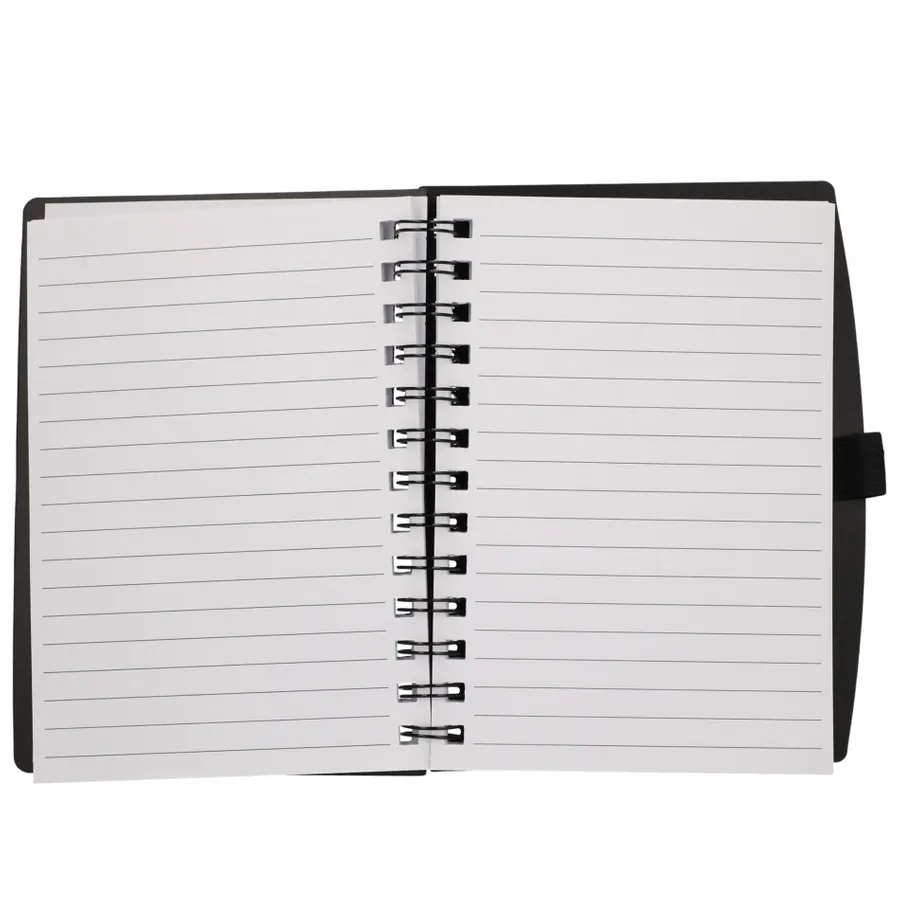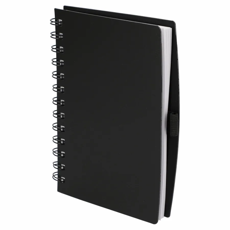 Stay organized with the eco-friendly 5.5” x 7” FSC Recycled Coordinator Notebook. Its cover is crafted from recycled PP material, and it offers 100 pages of FSC-Certified recycled white lined paper for all your note-taking needs. Plus, youll find a convenient pen loop on the back cover, ensuring youre always ready to jot down your thoughts while minimizing your environmental footprint.