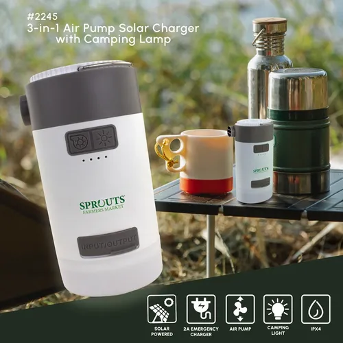 - 3-in-1 Air Pump Solar Charger with Camping Lamps