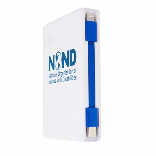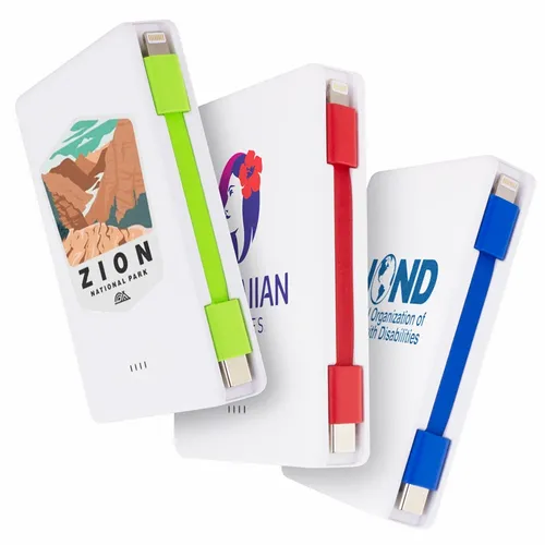 Keep business teams powered up with this officially UL-listed 5,000 mAh power bank that comes with a built-in storage section for a short Type-C to Lightning cable. The attached cable works with Android and Apple phones, PLUS, recharges the power bank. Having a cable always nearby will help keep teams efficient while speeding through a productive day.The innovative ONE CABLE™ solution charges old iPhones (14 and earlier models), new iPhones (15 and newer with a Type-C port), and all Android pho