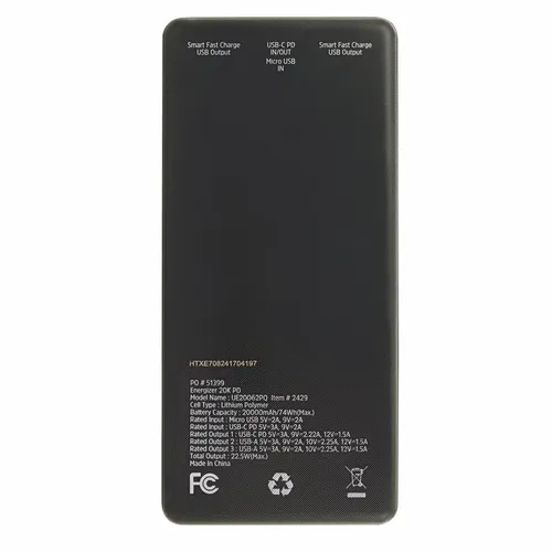 Equipped with a high-capacity 20,000mAh battery, this power bank can provide multiple charges throughout a busy workday. With a sleek and compact design, this power bank is the perfect companion for work, a long flight, or a weekend adventure.