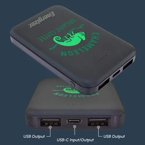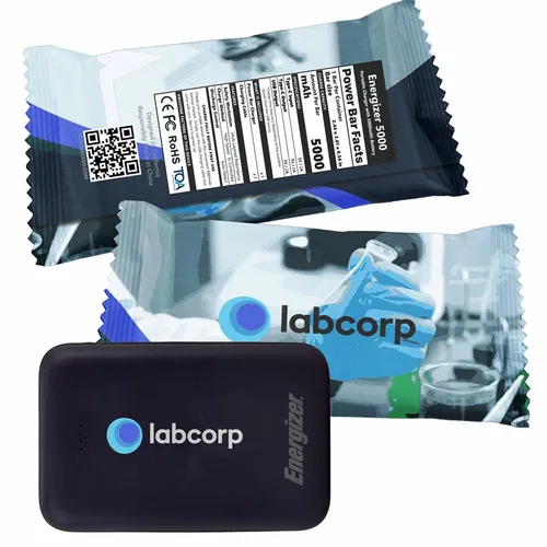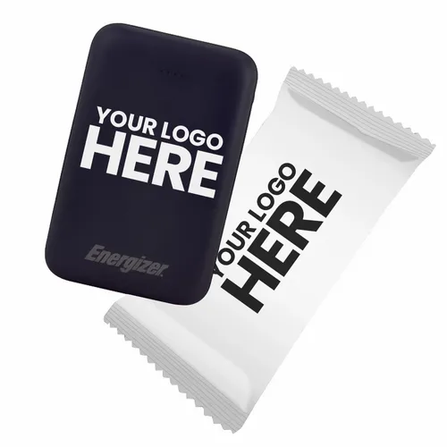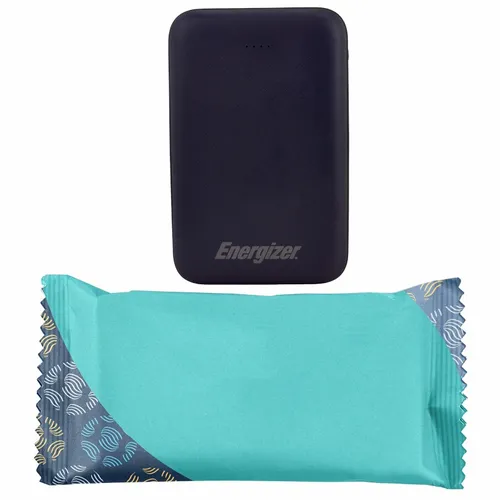 A great looking Energizer power bank with 5,000 mAh battery capacity wrapped in a fun candy wrapper. It's a great device for daily use for any busy professional.