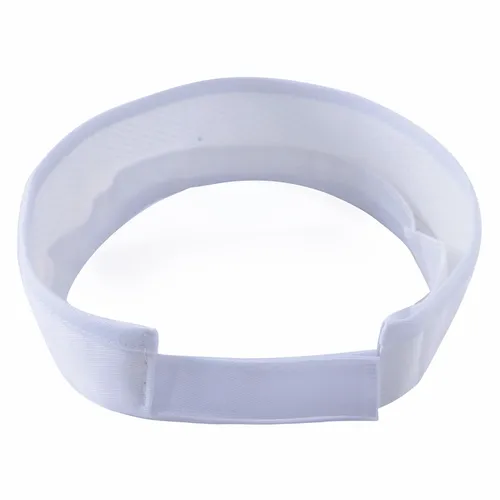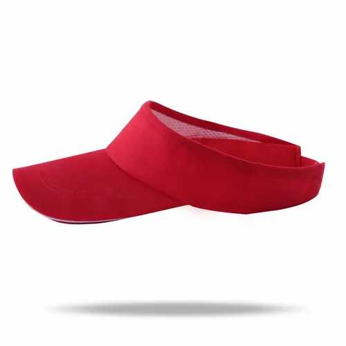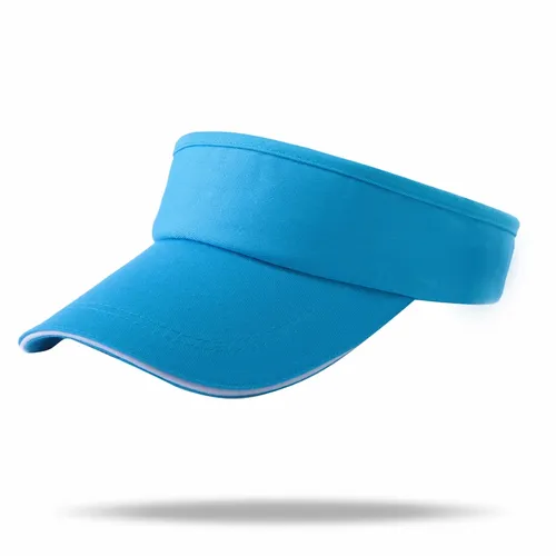 This is a simple visor style that can be worn playing tennis,great for Summertime Outdoor Sports. Adjustable Strap for perfect fit. Plain Solid colours to design team logos. Light weight and comfortable for sun and summer and Bill is stiff and pre curved, Sandwich bill.
