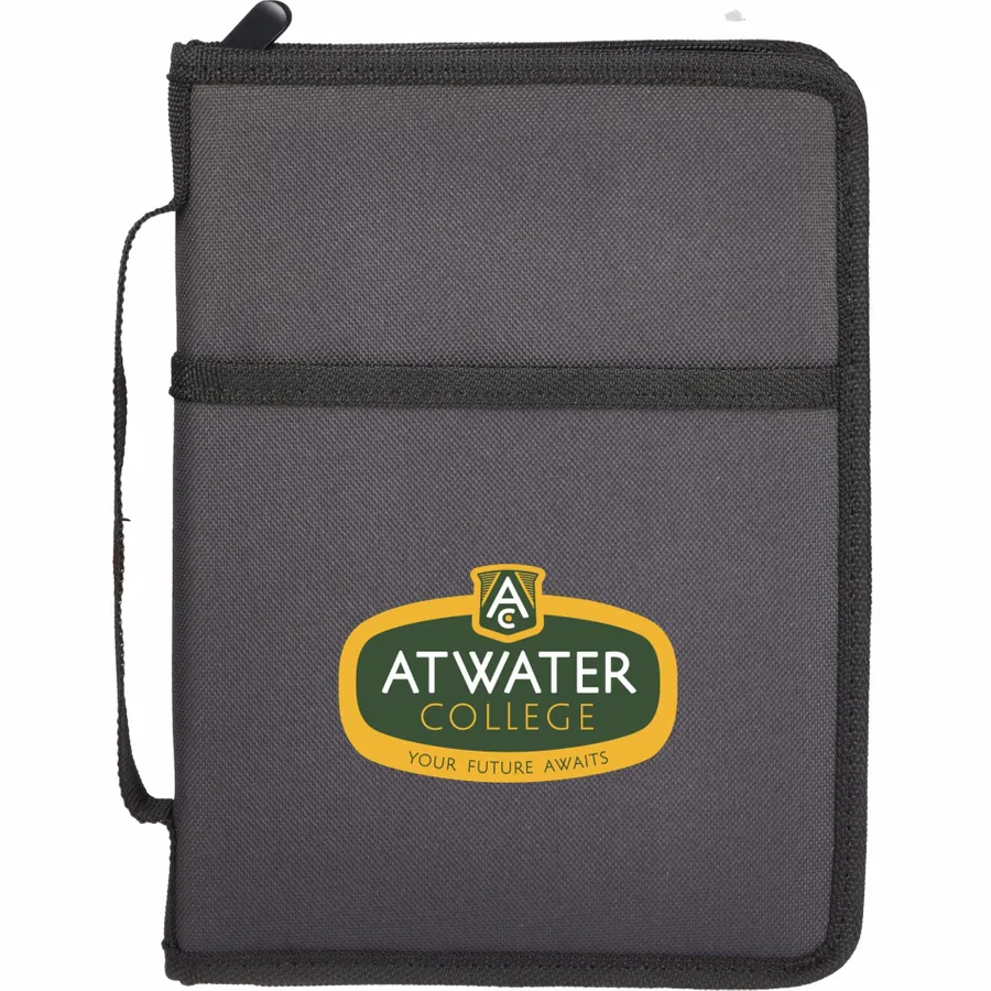 The Repreve Ocean Refillable Journal features a 100% recycled ocean plastics cover with a pocket for storage and side handle for easy carrying. Interior features include three card slots, mesh pocket, black pen loops. Journal included has a black card paper cover and 60 sheets of recycled lined paper. Zipper closure. By choosing this journal, youre making a positive impact on the environment, as one percent of sales are donated to environmental nonprofits through a partnership with 1% For The Planet.