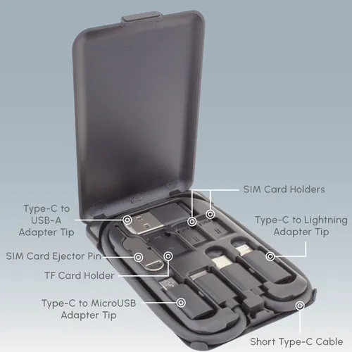 Chi-Charge Cable Card - collapsible wireless charging stand and charging cable carriers