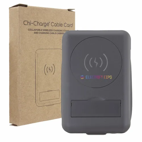 - Chi-Charge Cable Card - collapsible wireless charging stand and charging cable carriers