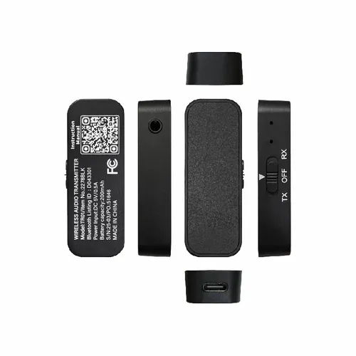 A transmitter that will connect your wireless headphones or earbuds to any audio jack. Use it on the plane, boat, or in the gym, anywhere there is an audio jack. Easily switch between transmit (TX) and receive (RX) modes. It has a 3.5mm audio aux port and Type-C charging port.