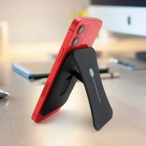 Serious business professionals need to keep an eye on their phones, and the Magnet Phone Wallet & Stand is a stylish way to prop up a phone on any busy office desk. The comfortable angle stays constant with an interconnecting strap between the two supports. The flap-stand magnetically stays closed when not in use. It also holds those important cards that everyone needs by their side. It is simple and easy to set up. Attach the included self-adhesive metal ring to the device, and that is it.