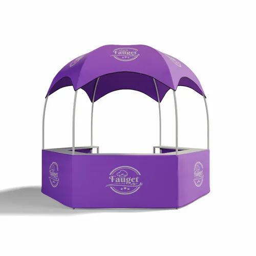 Make a memorable impression with the Custom Dome Tents & Counter. This unique and eye-catching tent is the perfect solution for product sampling, promotions, event registrations, or any trade show that demands a professional and inviting presence. Its distinctive dome shape provides 360-degree visibility for your brand, while the integrated wrap-around counter offers a practical and convenient workspace. Stand out from the crowd and draw customers in with a vibrant, fully branded Dome Tents.