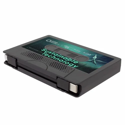The Awesome Mixtape 2.0 Wireless Speaker is now a 2,000 mAh capacity power bank and a wireless speaker. Get ready to travel with big sounds for workouts or relaxing, and also comes with the new ONE CABLE (Type-C-to-Lightning) that comes stored on one side of the Awesome Mixtape 2.0 for your convenience. This fun retro cassette design is customized on the "A-side" and "B-side" labels with full-color printing that will show off a brand with style points.